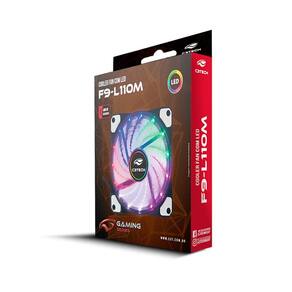 Apresentação: O cooler fan f9-l110m da c3tech tem design moderno com sistema de iluminação multicores, através de led interno. Conta com excelente sistema de refrigeração com 9 lâminas, permitindo o equilíbrio do fluxo de ar junto a pressão do vento, de modo silencioso. Possui conector molex de 4 pinos.