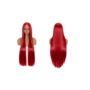 01 PERUCA SUPER LONGA VERMELHA LISA TAMANHO: 100CM CABELO SINTÉTICO. CARACTERÍSTICAS GERAISPRODUZIDA COM CABELO DE FIBRA SINTÉTICA