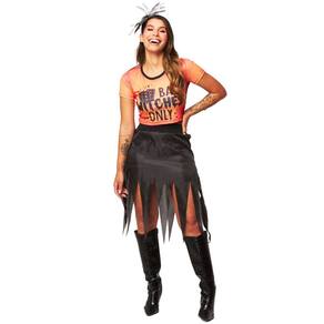 Fantasia Bruxa Halloween Feminina Adulto Conj Cropped e Saia