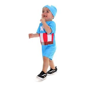 Fantasia Capitão América Macacão Bebê - OriginalPreço por FantasiaModelo: Capitão América CurtoTamanhos (manequim-altura da criança):- P (12 a 18 meses - 70 a 79 cm);- M (18 a 24 meses - 80 a 89 cm).A fantasia é composta por• Macacão Curto; e• Touca.Especificações técnicas:• Personagem: Capitão América• Tecido Macacão: 100% Poliéster• Tecido Touca: 100% Poliéster
