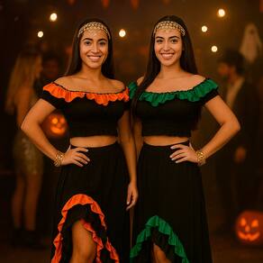 OBS: As alterações de cores referem-se apenas as cores do babado. Cor principal sempre preta. As medidas podem ter pequenas variações para mais ou para menos e as cores variações na tonalidade.