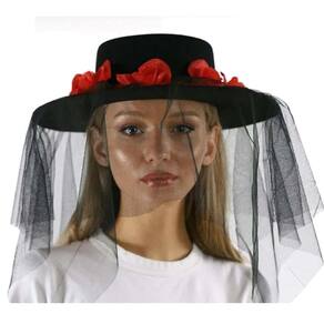 Fantasia adulta do Day of the Dead Skeleton Chapéu gaúcho com rosas vermelhas e véu