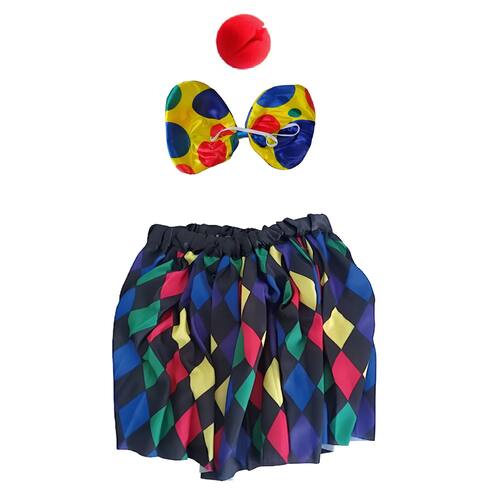 Fantasia De Palhaça C/ Saia Gravata e Nariz - 3 Pçs Circo Festas