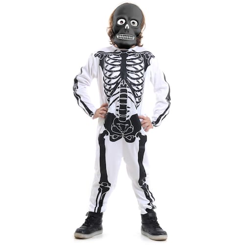 Fantasia Esqueleto Branco C/ Preto Infantil Halloween C/ Máscara