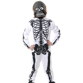 Vista sua criança com mistério e estilo com a Fantasia de Esqueleto Branco e Preto!