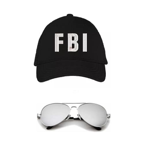 Fantasia FBI C/ Boné Bordado Branco e Óculos Espelhado
