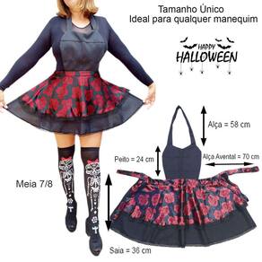 Fantasia Feminina Festa Halloween Avental Temático Caveira Mexicana e Morcego + Meia 7/8 Combinando. Modelo Adulto.