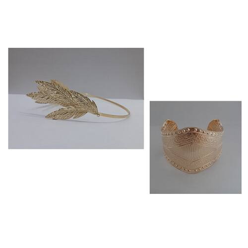 São 2 peças um conjunto de 1 Coroa Grega e 1 Bracelete para compor sua fantasia com material de qualidade, acabamento puro, durável, leve e ecológico.