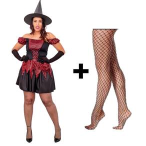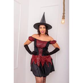 Contém: Vestido, chapéu, par de luvas e meia calça arrastão preta. NÃO ACOMPANHA DEMAIS ACESSÓRIOS