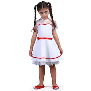 Ideal para Aventuras: Esta fantasia não apenas capta a essência da boneca Annabelle, mas também oferece conforto e liberdade de movimento para que sua menina possa aproveitar todas as atividades do Halloween.