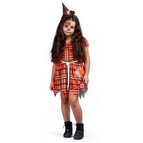 Fantasia Halloween Espantalho Menina Infantil Com Chapéu