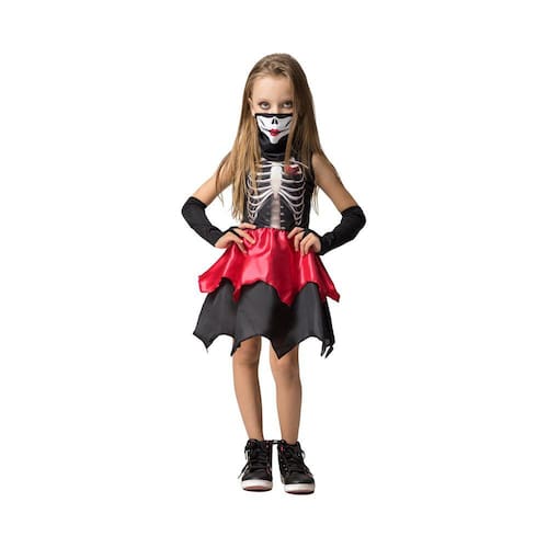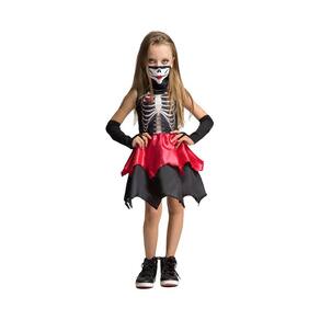 Lindo modelo, rico em detalhes, fantasia composta por um vestido preto e vermelho, com lindas e assustadoras estampas na parte de cima de esqueleto com manchas de sangue!