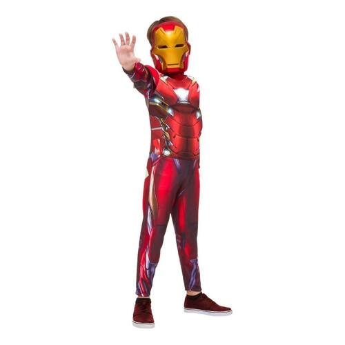 Tamanhos (manequim-altura da criança):- P (3 a 4 anos - até 100 cm);- M (5 a 8 anos - 101 a 120 cm);- G (9 a 12 anos - 121 a 140 cm).A fantasia é composta por:- Macacão Longo; e- Máscara.Especificações técnicas:- Personagem: Homem de Ferro / Iron Man- Tecido Macacão: 100% Poliéster- Material Máscara: PlásticoINFORMAÇÕES IMPORTANTES:- A(s) cor (es) dos produtos podem sofrer variação de tonalidade, de acordo com a configuração do seu dispositivo ou monitor.- O prazo de entrega informado no anúncio é apenas uma previsão, podendo sofrer alterações na data de entrega informada no ato da compra por motivo de força maior.
