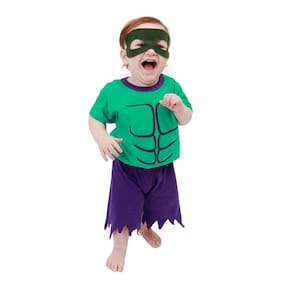 O Hulk é o super herói mais parecido com os humanos mas nem por isso deixa de ser tão querido pelas crianças. Conjunto de shorts e camiseta de mangas curtas nas cores roxo e verde, possui serigrafia que brilha no escuro, imagina a diversão que vai ser!
