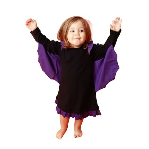 A fantasia infantil de Vilã em algodão se trata de um vestido infantil preto com mangas longas tipo morcego e detalhes em roxo. Confeccionado em material macio e aconchegante, esse vestido pode ser utilizado também como pijama, sendo ideal para a criança usar tanto na hora de brincar como na hora de dormir. Para completar a brincadeira, a peça acompanha uma tiara em feltro. Informações técnicas:Tecido: 100% algodão Marca: FÁBRICA DE SONHOS