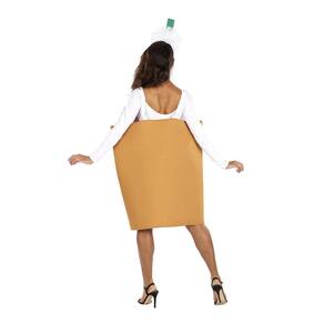 - Detalhes divertidos: esta fantasia exclusiva para adultos inclui um logotipo "Just Coffee" impresso na frente da túnica e apresenta acabamento branco em "espuma". O acessório de cabeça correspondente também tem um "canudo" saindo da parte superior para detalhes extras.