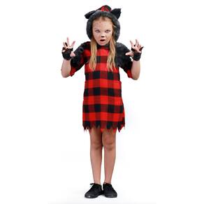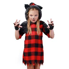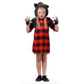 Fantasia Lobinha Infantil Halloween Feminino C/ Acessório de Mão