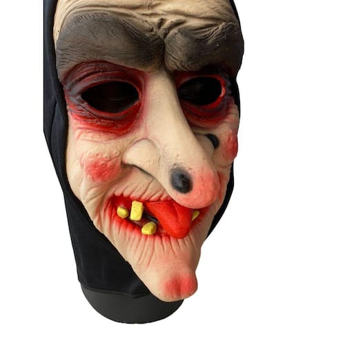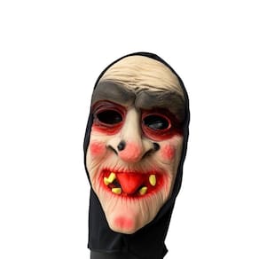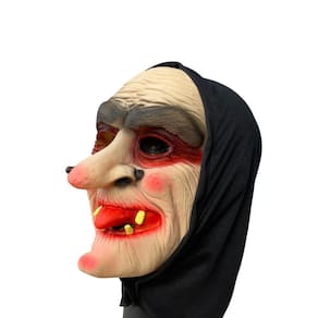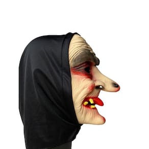 A Máscara Bruxa com Capuz é terrível. É ideal para brincar no Carnaval ou para uma festa a fantasia. A Máscara Bruxa com Capuz cobre a cabeça inteira pois tem um capuz na parte de trás, tem um nariz muito grande e uma boca temerosa. Cor: Bege e vermelho