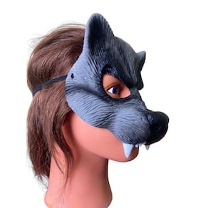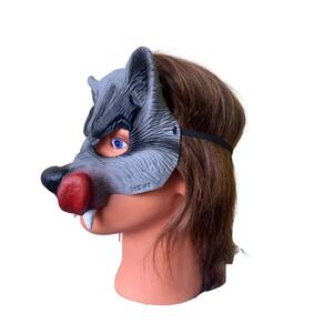 Fantasia Mascara Lobo Mau Com Língua De Fora Em Látex Festa - Cinza