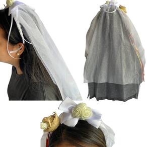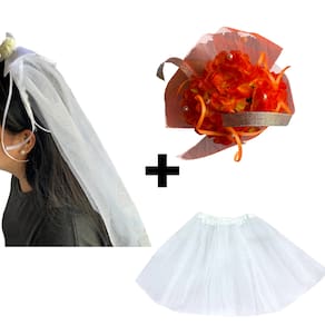 Especificações Técnicas   Contém:1 tiara com véu, 1 buquê e 1 saia Material: Poliéster, tule, eva e algodão    Medidas:Saia - 40cm (comprimento) / cintura com elástico estica até 90cm  Buquê - 25cm (altura) / 23cm (largura) Véu (Tiara) - 70cm (comprimento) / 19cm (largura)   OBS: as medidas podem ter pequenas variações para mais ou menos e as cores variação na tonalidade.