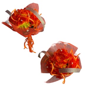 Fantasia Noivinha Caipira Completa Festa Junina Kit Véu Buquê e Saia De Tule Quadrilha São João Arraia Quermesse - Laranja - L