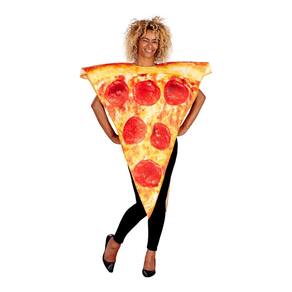 - O TRAJE INCLUI: túnica triangular com estampa de pizza de pepperoni. Tamanho único para a maioria dos adultos.