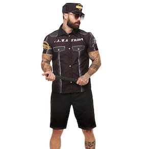 Fantasia Policial Masculino Adulto – Roupa Carnaval com Quepe