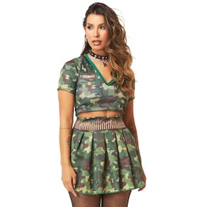 Fantasia Soldada Feminina Militar – Cropped e Saia