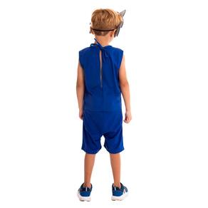 O que acompanha: Macacão curto azul inspirado no Sonic Máscara do personagem para completar o visual