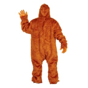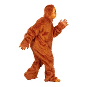 - O traje inclui: vem com um macacão totalmente coberto de pele sintética marrom. Ele também vem com uma máscara de sasquatch de látex e pele, um par de mãos moldadas em látex e um par de pés moldados em látex.