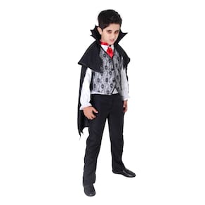 Deixe sua criança entrar no mundo misterioso dos vampiros com nossa imponente Fantasia de Vampiro Drácula de Luxo para Crianças! Este traje sofisticado e cativante é perfeito para destacar-se em festas e eventos de Halloween.