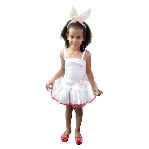 Fantasia Vestido Coelha Páscoa Infantil Menina Coelhinha Branca Carnaval Zumbi Terror - Branco - 8
