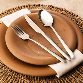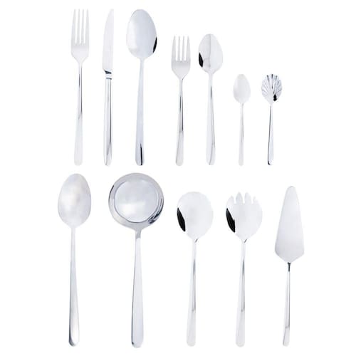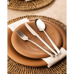 Composto por 54 peças, incluindo facas de mesa, garfos de mesa, colheres de mesa, colheres de sobremesa, garfos de sobremesa e colheres de chá, atende a todas as necessidades da mesa.