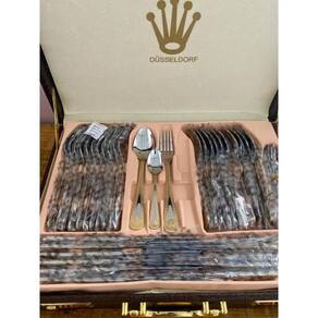 Faqueiro 84 Peças Designer Alemão 24K Faqueiro Aço Cirugico Luxo 84 Peças Dourado com Maleta Peças em Aço cirugico Inoxidável 18/10 3.0mm de espessura com filetes dourados ouro 24k, design exclusivo e sofisticado Faqueiro leva charme, elegância e bom gosto para a composição da sua mesa. Um faqueiro clássico produzido em aço inox, ricamente adornado e exclusivo. Todas as peças são produzidas em aço inoxidável. Apresentam espessura de 3mm e acabamento espelhado. Caixa produzida no estilo maleta reforçada com fechamento em sistema de código. 01 Maleta com: 12 Colheres 12 Garfos principais 12 Facas principais 12 colheres chá/sobremesa 12 Garfos sobremesa 01 Espátula pata bolo 02 Garfos peixe 01 Concha grande 01 Concha pequena 01 Colher açucareiro 01 Pegador 02 Colheres para servir 02 Colheres de salada Garantia 1 ano. Ean: 7909463143145
