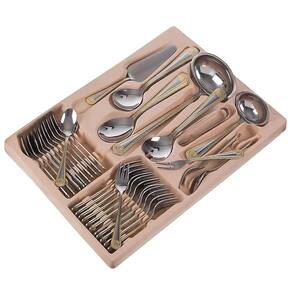 Faqueiro 84pcs Designer Alemão Super Luxuoso Faqueiro 84Pcs Designer Alemão Super Luxuoso Faqueiro 84 Peças em Aço Inoxidável 18/10 3.0 mm de espessura com filetes banhando a ouro 24 k, design exclusivo e sofisticado.Caixa produzida em courino, estilo maleta reforçada com fechamento em sistema de código. Faqueiro leva charme, elegância e bom gosto para a composição da sua mesa. - Um faqueiro clássico produzido em aço inox, - Ricamente adornado e exclusivo. - Todas as peças são produzidas em aço inoxidável. Apresentam espessura de 3 mm e acabamento espelhado. - Caixa produzida em courino, estilo maleta reforçada com fechamento em sistema de código. Ficha técnica - Comprimento: 44 - Unidades por kit: 84 - Talheres incluídos: Colheres - Material da lâmina: Aço inoxidável - Material do cabo: Aço inoxidável - Cor principal: Marrom