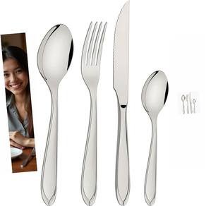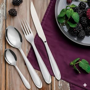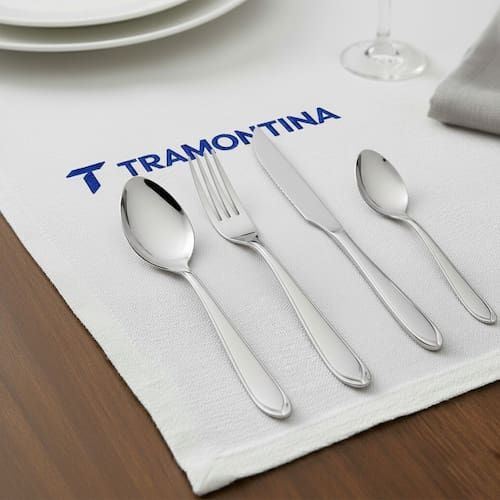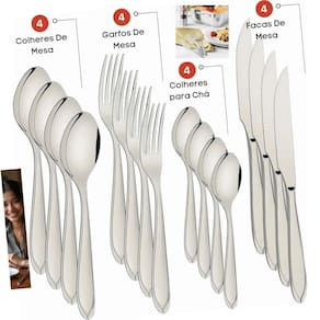 - Facas totalmente temperadas, que garantem maior durabilidade no fio de corte e resistência à corrosão. - Peças totalmente feitas de aço inox, altamente duráveis, preservando a beleza, a higiene e a durabilidade do material. - Garfos com dentes polidos e bordas arredondadas, proporcionando conforto no uso. - Colheres com bojo em formato simétrico e bordas cuidadosamente arredondadas. - Próprias para uso diário, combinam com qualquer ambiente. - Podem ser lavadas diariamente na máquina de lavar louças. - Acabamento em brilho, com detalhes no cabo.