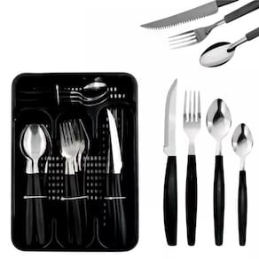 CONTÉM: 01 Conjunto de Talheres Home em Aço Inox Preto 25 Peças.