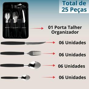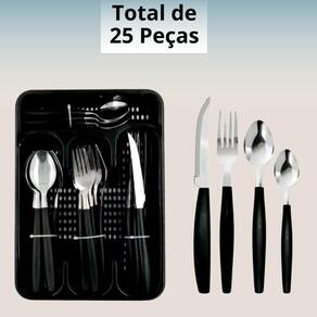Faqueiro Aço Inox 25 Peças Preto Resistente Com Organizador