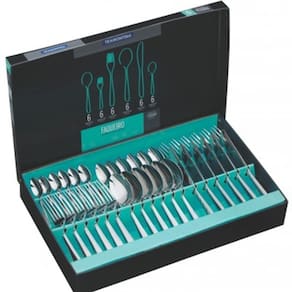 Use apenas sabão ou detergente e uma esponja macia. Outros tipos de produtos, como palha de aço, poderão riscar ou prejudicar o brilho dos talheres.