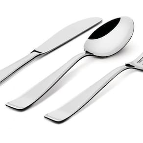 Use apenas sabão ou detergente e uma esponja macia. Outros tipos de produtos, como palha de aço, poderão riscar ou prejudicar o brilho dos talheres.