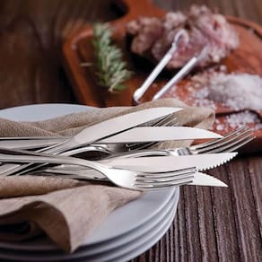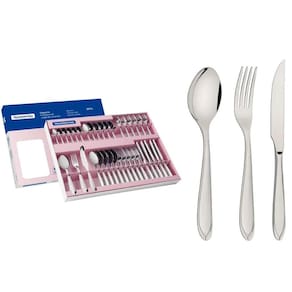 Garantia: 90 dias / Peso: 8,800kg / Cor predominante: inox / Ref: 7891116084168; Dimensão da embalagem: 43cm (C) x 61cm (L) x 33cm (A). Cuidados: - Para garantir a durabilidade dos produtos, recomenda-se secá-los bem após a lavagem, mesmo sendo em máquina de lavar louças; - Sempre que possível, use água quente, pois renova o brilho do talher. - Após a lavagem, enxugue imediatamente os talheres, caso contrário, as substâncias químicas da água (cloro) poderão causar manchas. - Evite atrito entre os talheres durante o processo de lavagem e no armazenamento, para mantê-los sem riscos. - Evite o contato das peças com superfícies quentes. Elas provocam a descoloração do produto. - Não guarde os talheres em locais úmidos. A umidade também provoca manchas. Materiais: polipropileno e aço inox. Conteúdo: - 6 facas para churrasco; - 6 colher para café; - 6 garfos para torta; - 6 garfos de mesa; - 6 colher de mesa; - 6 colher para chá.
