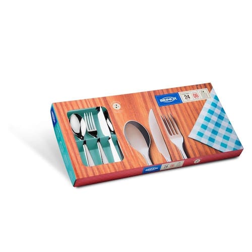 Para um toque especial à mesa, a linha de talheres Bellagio foi desenvolvida com design de traços suaves e delicados. A estrutura e os cabos em aço inox polido tornam as peças altamente durável e resistente, não correndo risco de oxidar e podendo inclusive ir á máquina de lavar louça. Na versão com 24 peças, o faqueiro contém os utensílios básicos de uma mesa para seis pessoas: garfos e colheres de mesa, facas de churrasco e colheres de chá.