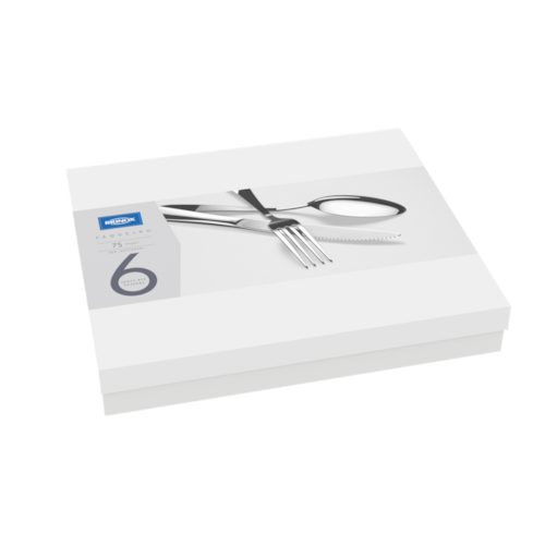 A linha Lyon possui frisos que valorizam cada detalhe e mix de produtos para mesa e servir, completos. A estrutura e os cabos em aço inox polido tornam as peças altamente durável e resistente, não correndo risco de oxidar e podendo inclusive ir á máquina de lavar louça. Na versão com 75 peças, o faqueiro contém utensílios de uma mesa para doze pessoas: garfos, colheres e facas de mesa, colheres médias, garfos de torta e colheres de café.