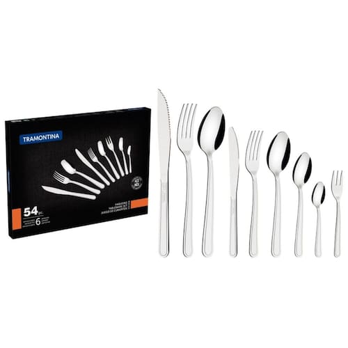 Nada como ter a família e os amigos ao redor da nossa mesa, saboreando uma ótima refeição. E para completar esse momento tão especial, você pode contar com o Faqueiro Tramontina Búzios em Aço Inox 54 Peças! Um faqueiro perfeito para você que procura por talheres clássicos, que aliem beleza e durabilidade. As peças são resistentes, além de poderem ir à máquina de lavar louças. É um faqueiro ideal para suas refeições diárias e, é claro, para fazer de seus encontros momentos cada vez mais alegres!