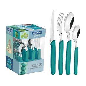 Com o Faqueiro Tramontina Carmel com Lâminas em Aço Inox e Cabos de Polipropileno Turquesa Médio 24 Peças você tem toda a modernidade e beleza da linha Carmel, que traz produtos com um design exclusivo. O faqueiro conta com garfos, facas para churrasco, colheres e colheres de chá produzidas em aço inox e espessura que mantém formas inalteradas mesmo com uso intenso. Os cabos com formato ergonômico são produzidos em polipropileno com diversas opções de cores, garantindo um manuseio confortável e seguro. O fio das facas tem maior durabilidade, pois as lâminas em aço inox recebem tratamento térmico. Uma linha que traz alegria e leveza para todos os momentos à mesa.