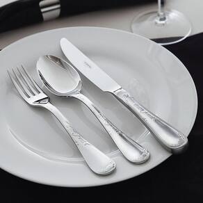 - Feito em aço inox, cada peça é uma obra-prima, com facas de mesa que combinam acabamentos brilhantes e foscos, realçados por detalhes em alto relevo nos cabos.