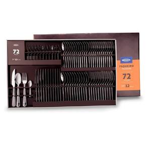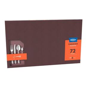 ESPECIFICAÇÕES: - Material: Aço Inox - Linha: Módena - Composição: 01 Faqueiro 72 peças - Espessura da faca: 2,5 mm - Espessura do garfo e colher: 1,2 mm - Peso: 2,6 Kg - Garantia: 90 dias para vícios e defeitos de fabricação