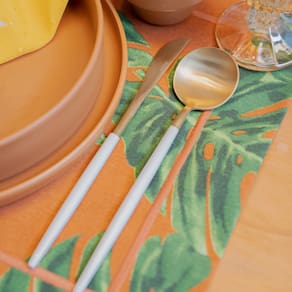 Faqueiro Em Inox Kyoto Dourado E Branco Com 24 Peças Wolff - Características Gerais do Produto: • Dimensões: Faca de Carne 22x1,5x1cm | Garfo de Mesa 22x2,6x2cm | Colher de Mesa 21,2x4,8x2cm | Colher de Chá 13,7x2,8x1,3cm • Material Principal: Inox • Linha: Kyoto • Cor: Dourado • Informações Adicionais: Lavar preferencialmente com água morna e detergente neutro; Não usar esponjas de aço ou abrasivas que riscam e removem o brilho; Secar imediatamente com flanela branca ou pano macio; Não deixar as peças de molho; Evitar contato prolongado com restos de comida; Não pode ir a lava-louças e nem ao micro-ondas
