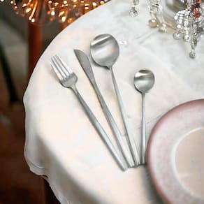 • 4 Facas de Carne 4 Garfos de Mesa 4 Colheres de Mesa 4 Colheres de Sobremesa