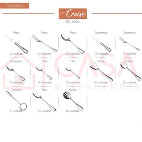 Faqueiro Hercules Aço Inox Croisé 101 Peças Com Estojo Gift Box Descrição: Requinte e elegância para os melhores momentos A linha de talheres Croisé Hercules foi pensada para aqueles que gostam de decorações tradicionais e elegantes com design exclusivo. Produzido em aço inox 18/0, possui acabamento premium brilhante, com maior ergonomia e conforto trazendo grandiosidade e sofisticação para a sua mesa. Possui lâmina forjada e temperada, polimento entre os dentes e pontas perfurantes, aumentando a sua resistência e durabilidade. Os detalhes em alto relevo trazem um toque luxuoso para momentos inesquecíveis. Os talheres Hercules seguem um rigoroso padrão de qualidade, com produtos para todas as ocasiões e necessidades, sendo reconhecida nacionalmente e internacionalmente Venha conhecer a linha completa de talheres Croisé Hercules Características: - Aço inoxidável; - Aço Inox 18/0; - Acabamento Premium com alto Brilho; - Ergonômico; - Lamina Forjada e Temperada; - Polimento entre os dentes; - Pontas Perfurante; - Monobloco, obtidas de uma única peça, sem emendas; - Design Exclusivo e Sofisticado; - Pode ir a Lava Louças; Composição: - 12 Colheres de Mesa: 20,1 cm e espessura 2,5 mm - 12 Garfos de Mesa: 19,9 cm e espessura 2,5 mm - 12 Facas de Mesa: 24,2 cm lâmina 13,4 cm e espessura 7 mm - 12 Colheres de Sobremesa: 16,5 cm e espessura 2,5 mm - 12 Garfos de Sobremesa: 16,3 cm e espessura 2,5 mm - 12 Facas de Sobremesa: 21,1 cm lâmina 11,7 cm e espessura 6,5 mm - 12 Colheres de Chá: 13,4 cm e espessura 1,6 mm - 12 Colheres de Café: 10,3 cm e espessura 1,2 mm - 01 Colher de Salada: 20,2 cm e espessura 2,5 mm - 01 Garfo de Salada: 20,1 cm e espessura 2,5 mm - 01 Concha Terrina: 27,9 cm e espessura 2,5 mm - 01 Colher para Servir: 25,3 cm e espessura 2,5 mm - 01 Pá de Açucar: 13,9 cm e espessura 1,6 mm Especificações: Marca: Hércules; : 3 meses; ---- Aqui na Casa & Tendência você encontra os melhores utensílios domésticos e tudo que você precisa para sua cozinha ----